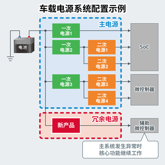 近年来,随着ADAS(高级驾驶辅助系统)等的发展,要求为这些应用供电的车载电源系统具有更高的可靠性。因此,越来越多的车载电源系统都开始配备冗余电源,以确保在应用产品的主系统发生异常时,产品的核心功能(辅助微控制器)依然可以继续工作。而冗余电源是一种在原系统中添加的电路,因此要求其必须能够节省空间并且功耗很低。ROHM利用多年来在电源开发领域中积累的专业知识和技术,开发出可用作一次电源的小型化新产品。