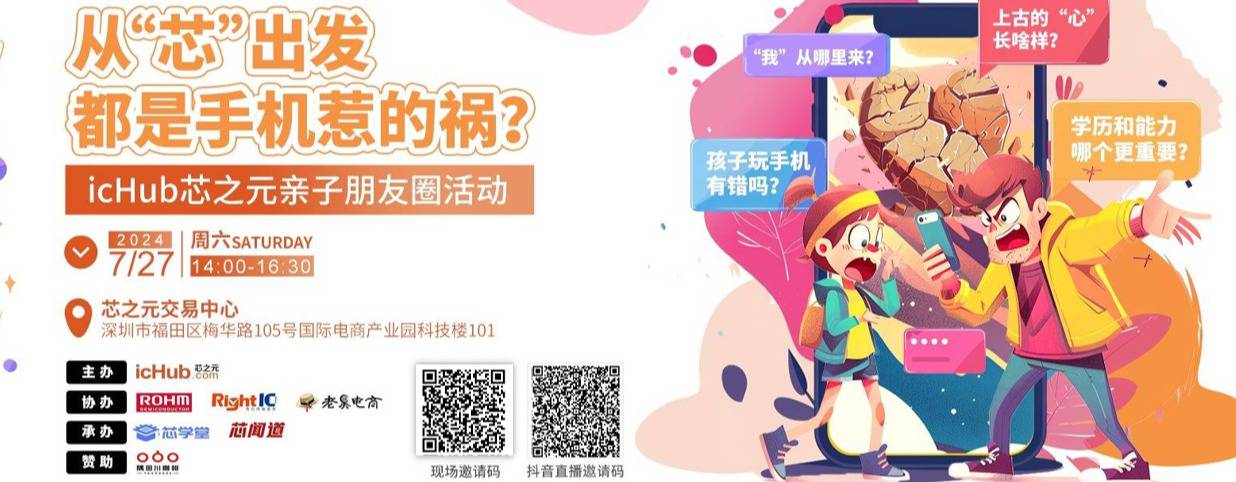 孩子与家长的关系如何处理?学业与就业是什么关系?少子化是错误吗?芯片与心、以及职业和我,有什么关系?等等这些,都是芯片供应链上下游的家长和孩子们关心的热点。芯之元icHub亲子朋友圈推出芯闻道情景剧《从“芯”出发:都是手机惹的祸?》,原汁原味,行业特制。欢迎业界家长和孩子们点击下方报名链接现场观看。