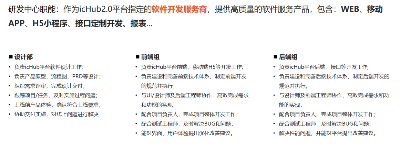 数据中心负责人GL进行了数据中心的相关介绍,数据中心分为客服、数据、交付三个部门,作为icHub2.0平台的数据服务商,提供各类基础到增值的数据服务。同时GL也强调了与研发中心合作的重要性:从基础支持,到需求,到交付。数据中心与研发中心紧密合作,构成完整的业务与项目的闭环。