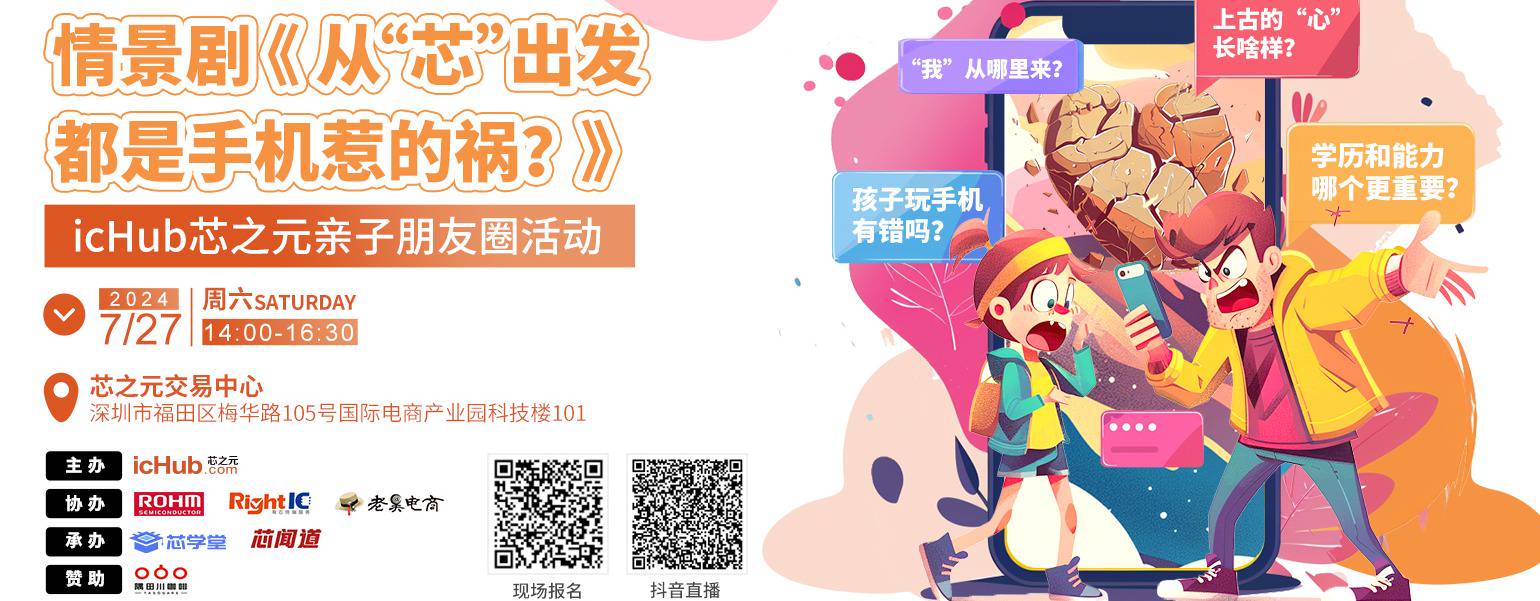 孩子与家长的关系如何处理?学业与就业是什么关系?少子化是错误吗?芯片与心、以及职业和我,有什么关系?等等这些,都是芯片供应链上下游的家长和孩子们关心的热点。芯之元icHub亲子朋友圈推出芯闻道情景剧《从“芯”出发:都是手机惹的祸?》,原汁原味,行业特制。欢迎业界家长和孩子们点击下方报名链接现场观看。