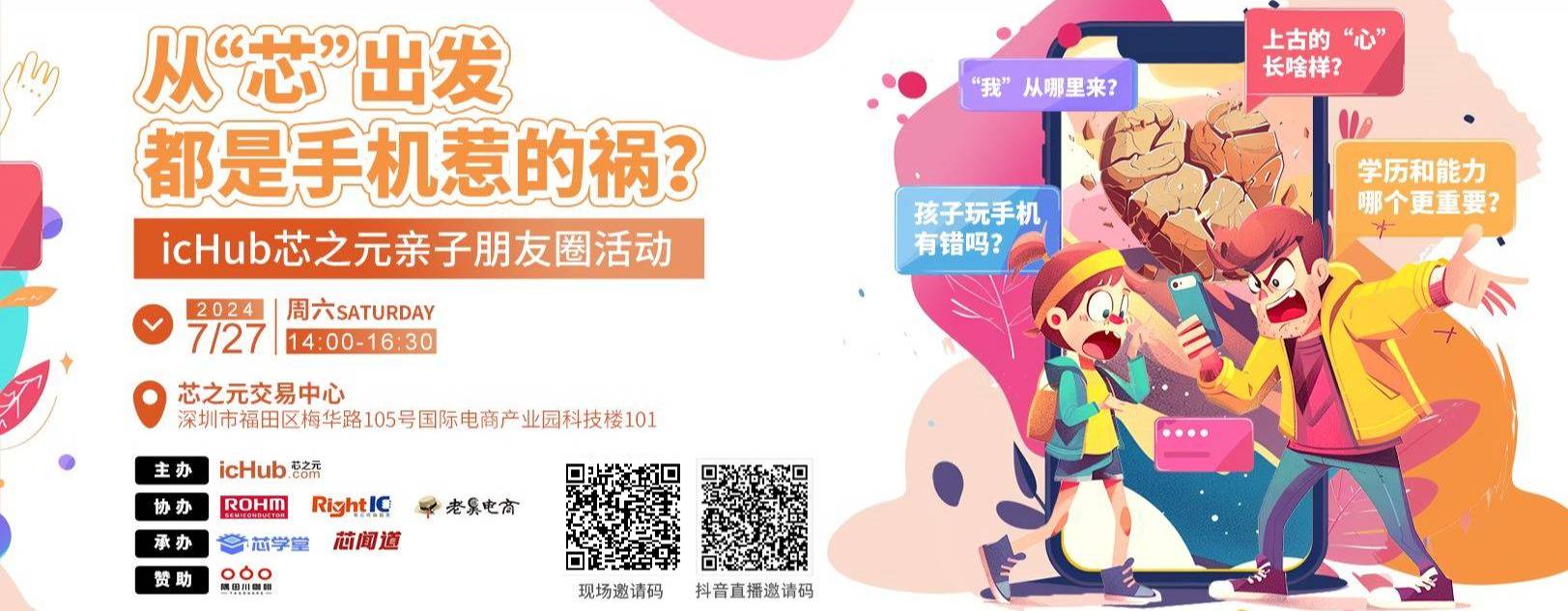 放暑假,去哪玩?来看芯之元icHub亲子朋友圈推出的情景剧《从“芯”出发:都是手机惹的祸?》吧。精彩脱口秀、职场面试初体验、家庭教育情景剧、反串PK辩论赛、老中少锵锵三人行,每个节目绝对原汁原味、行业定制!让家长和青春期少年们在有趣的互动中,体验一场由“手机惹的祸”引发的教育探讨和交流。欢迎业界家长和孩子们,点击以下报名链接到现场观看。